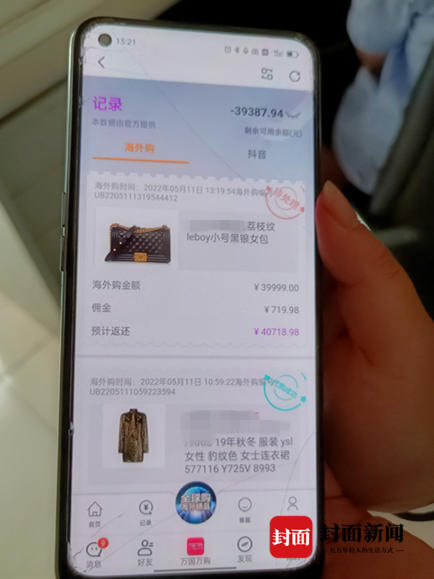 5月11日,何女士先后充值了15000元,完成了價值5999元、15659元的兩筆訂單,而面對第三筆金額高達(dá)39999元的訂單時,何女士驚呆了,這比她所有賬戶余額還要多。