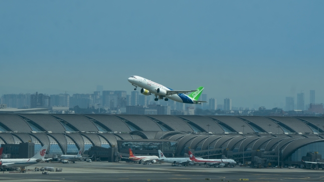C919從雙流國(guó)際機(jī)場(chǎng)起飛。丁平攝