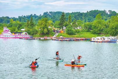 8月15日,雅安市名山區(qū)的百丈湖水上運動休閑俱樂部吸引了不少游客前往,享受水上運動的樂趣。 雅安觀察 黃剛 攝