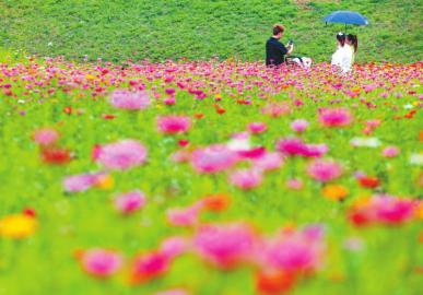8月,在滎經(jīng)縣龍蒼溝鎮(zhèn)的桌山花棲谷內(nèi),以百日菊為主的30余畝花田花開正盛。 雅安觀察 黃剛 攝