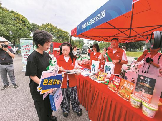 “我的盲盒里有牛肉醬,聽說(shuō)下飯、拌面都很好吃?!眮?lái)自河北保定的外國(guó)語(yǔ)專業(yè)新生侯金皓說(shuō)道。“之前我就買過(guò)這款酥香蠶豆,沒(méi)想到原產(chǎn)地是郫都啊?!眮?lái)自湖北十堰的李倩是一個(gè)“零食控”,打開“盲盒”的瞬間,她興奮地說(shuō)道。雖然每個(gè)禮品袋里的“內(nèi)容”不盡相同,但都是地道的“郫都味道”——楊國(guó)福的重慶小面;鵑城豆瓣的香辣牛肉醬、鵑城蘸水醬、酥香蠶豆、豆瓣蘸料;有友的豬皮晶、雞腳筋、泡鳳爪;丹丹郫縣豆瓣的油潑辣子、香辣蘸料,每一款都是細(xì)分賽道的佼佼者。