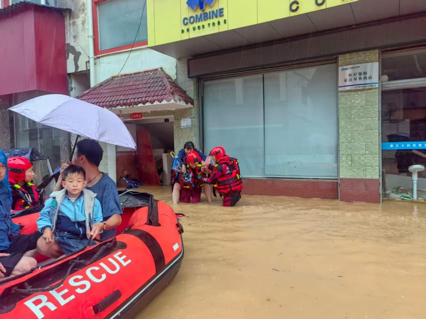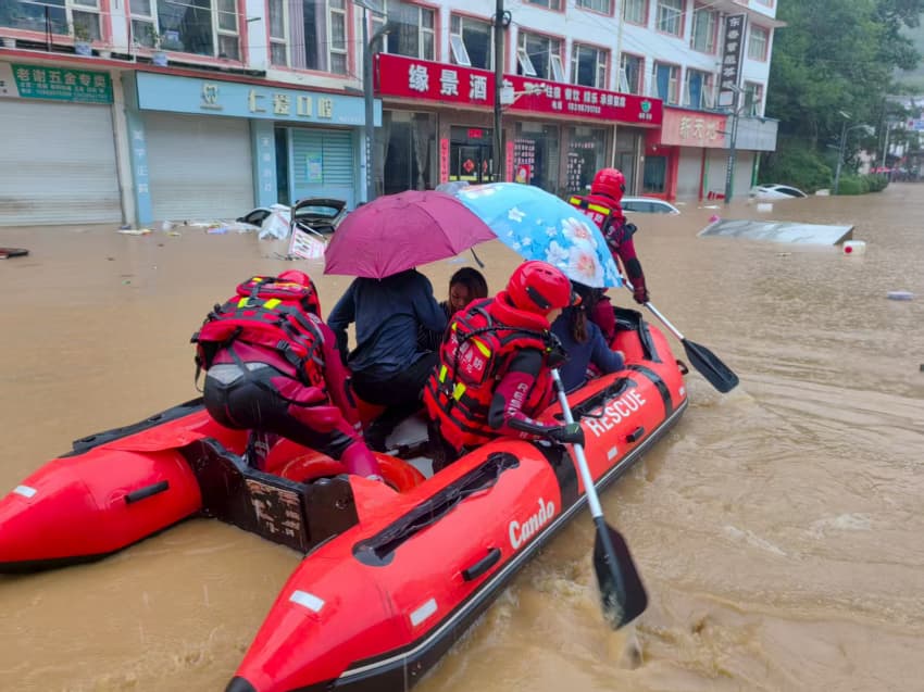 暴雨導(dǎo)致朝天區(qū)曾家鎮(zhèn)發(fā)生內(nèi)澇,多個門店進(jìn)水,有人員被困。接到出動命令后,消防救援人員攜帶橡皮艇、救生衣、繩索等裝備,抵達(dá)被困人員位置,做好防護(hù)措施后,利用橡皮艇,將34名群眾成功轉(zhuǎn)移至安全地帶。