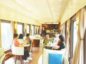 有人看中性價比,有人則看中旅途的方便和舒適性。52歲的古今帶著80歲的母親馬璐踏上“熊貓專列·安逸號”?!斑@是送給媽媽80歲的生日禮物?!惫沤裾f,媽媽年紀(jì)大了,一直想去新疆看看,但因為路途遙遠(yuǎn),擔(dān)心身體承受不了,一直未能實現(xiàn)。旅游專列“一鋪到底、行李隨車”模式,讓母女倆非常省心。
