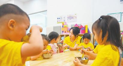 四川瀘州白酒產(chǎn)業(yè)園區(qū)天驕托育園里,孩子們在吃飯。四川日報全媒體記者 趙明 攝