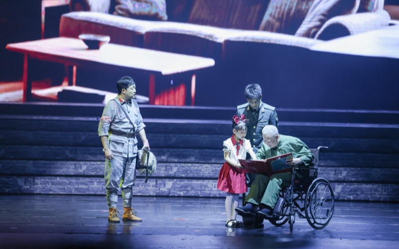 舞臺上,硝煙彌漫的戰(zhàn)爭場景與和平年代的蓬勃生機交替呈現(xiàn),通過家書誦讀、經(jīng)典戰(zhàn)歌合唱、剛勁有力的舞蹈表演等多元藝術(shù)手段,生動再現(xiàn)了中華兒女前赴后繼、舍生忘死的英勇群像,深刻詮釋了信仰的力量與民族的脊梁。