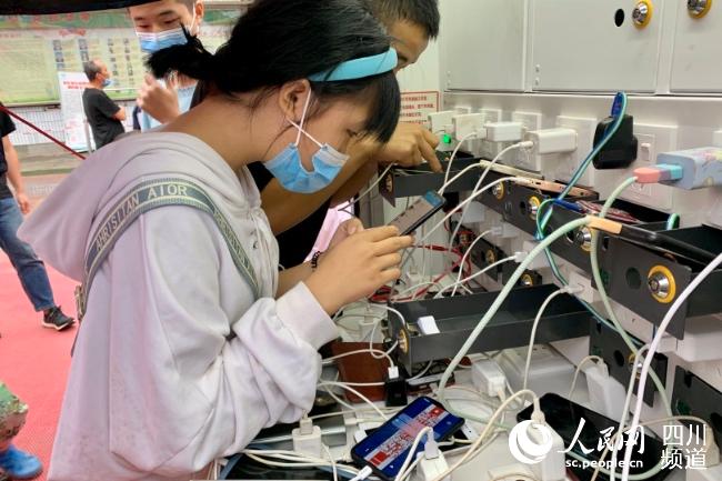 “這個東西太好了,手機馬上就能充電!”“謝謝你們想得周到!”9月16日上午10時20分,在瀘州市瀘縣龍腦橋中心小學(xué)地震災(zāi)后安置點,受災(zāi)群眾紛紛為自己的手機趕快充電。黃色的“方盒子”兩端有幾十個充電窗口,避險群眾用電難的問題,得到臨時緩解!巴嘏模铱从械娜顺淞艘粫,可能沒充滿電,但看到身后有人排隊,就讓出充電口!