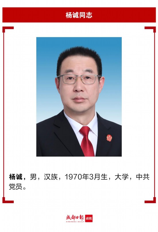 成都市十八屆人大一次會(huì)議今天下午舉行第三次全體會(huì)議,楊誠(chéng)當(dāng)選成都市中級(jí)人民法院院長(zhǎng)。
