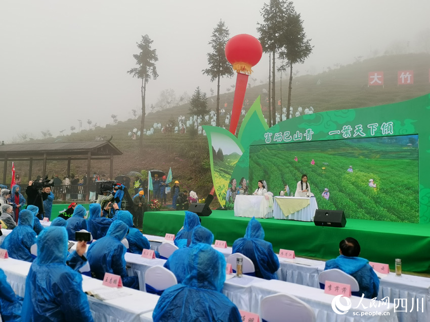 一朝睡起春芽綠,正是茶香四溢時(shí)。清明前一周,大竹縣第七屆“喊山開(kāi)茶”文化節(jié)隆重開(kāi)啟。一場(chǎng)“明前茶”的精彩亮相,讓春雨中的人們充滿驚喜。3月25日上午9點(diǎn)半,在銅鑼山腹地的四川省達(dá)州市大竹縣團(tuán)壩鎮(zhèn)白茶基地,空中彩帶飄動(dòng),人們笑語(yǔ)盈盈。伴隨著一聲聲“開(kāi)茶啰”的悠長(zhǎng)吶喊,沉睡一冬的茶山撩開(kāi)薄如輕紗的晨霧,顯露出蒼翠欲滴的姣容。
