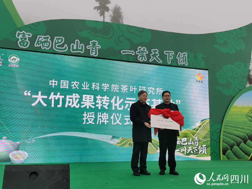 今年是大竹第七次開(kāi)展“喊山開(kāi)茶”活動(dòng),迎來(lái)了新的氣象。作為達(dá)州市首屆“巴山青”茶文化節(jié)的重要組成部分,今年的大竹縣“喊山開(kāi)茶”文化節(jié)收獲了中國(guó)農(nóng)業(yè)科學(xué)院茶葉研究所的認(rèn)可和青睞。在儀式上,中國(guó)農(nóng)科院茶葉研究所江用文書(shū)記為“中國(guó)農(nóng)業(yè)科學(xué)院茶葉研究所大竹成果轉(zhuǎn)化示范基地”進(jìn)行了授牌。這標(biāo)志著大竹縣白茶產(chǎn)業(yè)在通向“產(chǎn)學(xué)研一體化”的道路上邁出了關(guān)鍵一步,向著巴山白茶全產(chǎn)業(yè)鏈發(fā)展的目標(biāo)努力奮進(jìn)。