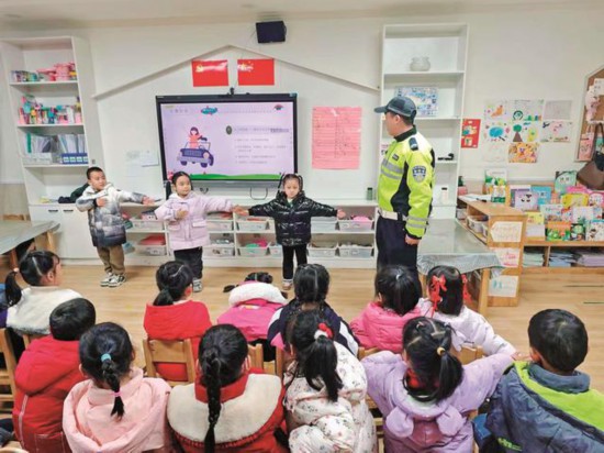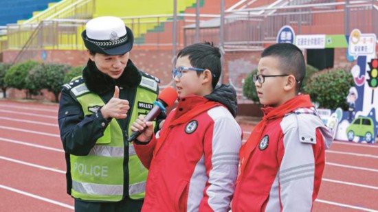 耐心為孩子們講解交通安全知識(shí)。