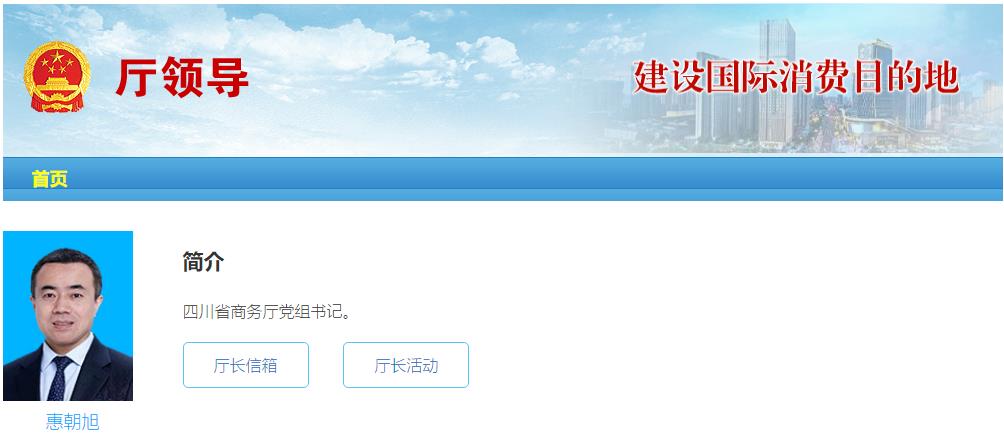 近日,四川省商務(wù)廳網(wǎng)站“廳領(lǐng)導(dǎo)”欄目、四川省經(jīng)濟(jì)合作局網(wǎng)站“領(lǐng)導(dǎo)簡介”欄目進(jìn)行更新。據(jù)最新領(lǐng)導(dǎo)名單顯示,惠朝旭已任四川省商務(wù)廳黨組書記,李江已任四川省經(jīng)濟(jì)合作局黨組書記。