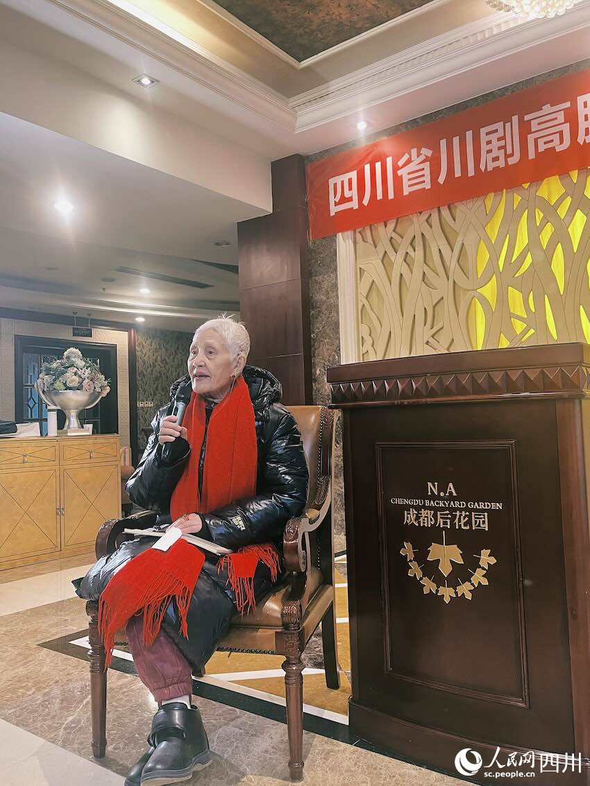 川劇第一代女幫腔,重慶市川劇院川劇演員戴彩萍回憶幫腔歷程。人民網(wǎng)記者 郭瑩攝