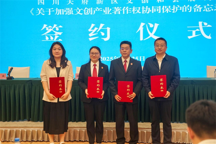 簽署《四川天府新區(qū)和重慶兩江新區(qū)關(guān)于加強(qiáng)文創(chuàng)產(chǎn)業(yè)著作權(quán)協(xié)同保護(hù)的備忘錄》。