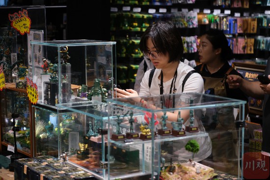 三星堆博物館內(nèi),游客選購文創(chuàng)產(chǎn)品。